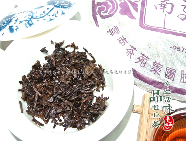 古树料发酵而成,冲泡后叶底油润依然。。香气扑鼻。