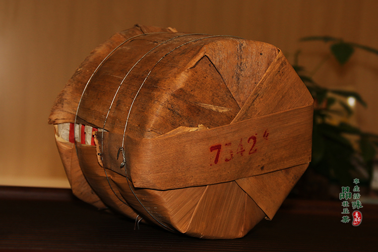 每饼重357克,以白绵纸包装后,每7块用竹笋叶包装成1筒,古色古香,宜于携带...